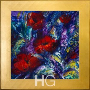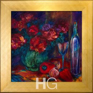 Blue Jugs and Purple Flowers